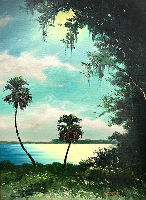 The Highwaymen are a group of African American landscape painters who in the 1960s and 70s showered Florida with their glowing interpretations of the tropical wilds. Twenty years later their forgotten paintings became recognized as markers of modern Florida and the American dream. In 2004 they were indoctrinated into the Florida Artists Hall of Fame, a function of the State of Florida.